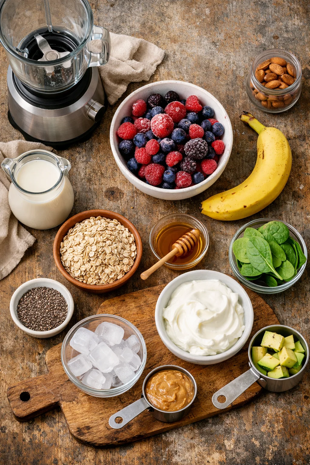 Greek yogurt is creamy and easy to find. Cottage cheese sounds weird but blends smoothly and tastes mild. Kefir gives a tangy flavor and can be easier on digestion. Protein powder is convenient, just pick one you actually like. Nut butter adds protein plus healthy fats, which helps a smoothie feel like a real breakfast.