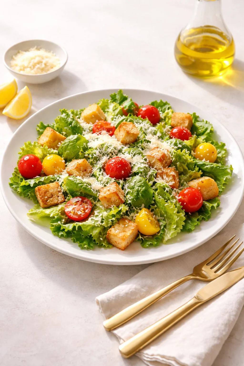 - Flavor: Caesar dressing, parmesan, black pepper, and a squeeze of lemon