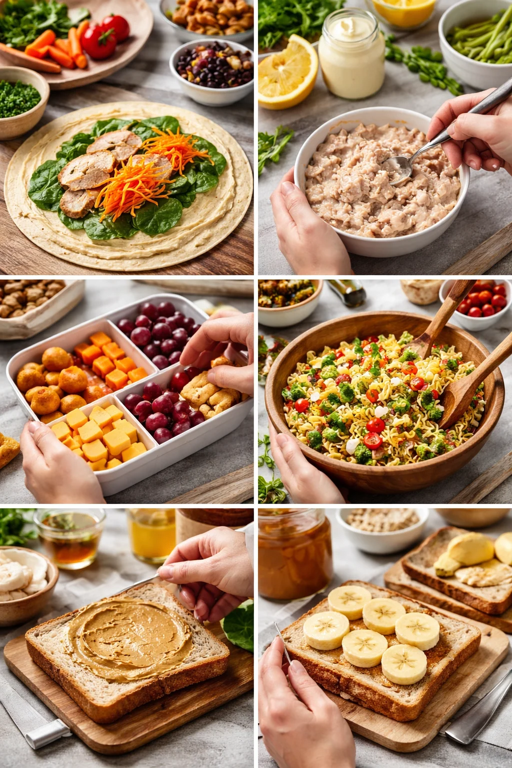 I keep it super basic. Pack crunchy stuff separate, sauces in a tiny container, and always throw in something you actually like, even if it is just a couple squares of chocolate. Also, if you can batch cook one item on Sunday like rice, chicken, or roasted veggies, your whole week gets easier.