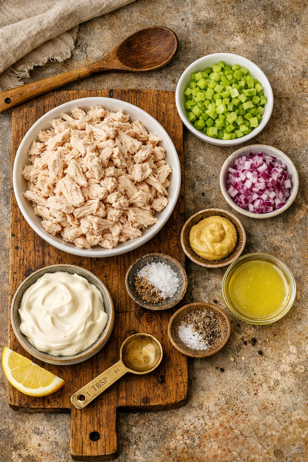 You do not need a long shopping list. You just need a few solid basics and you are in business. This simple chicken salad recipe with mayo depends on balance, creamy plus crunchy plus a little zip.