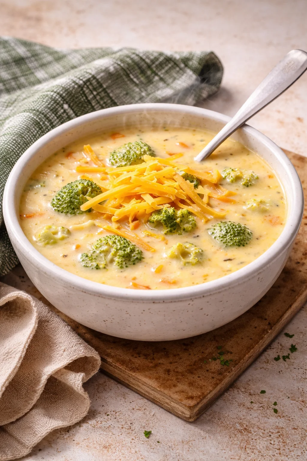 Once the cheese has melted and everything is combined, your Copycat Panera Broccoli Cheddar Soup is ready! Serve it hot with crusty bread for dipping.