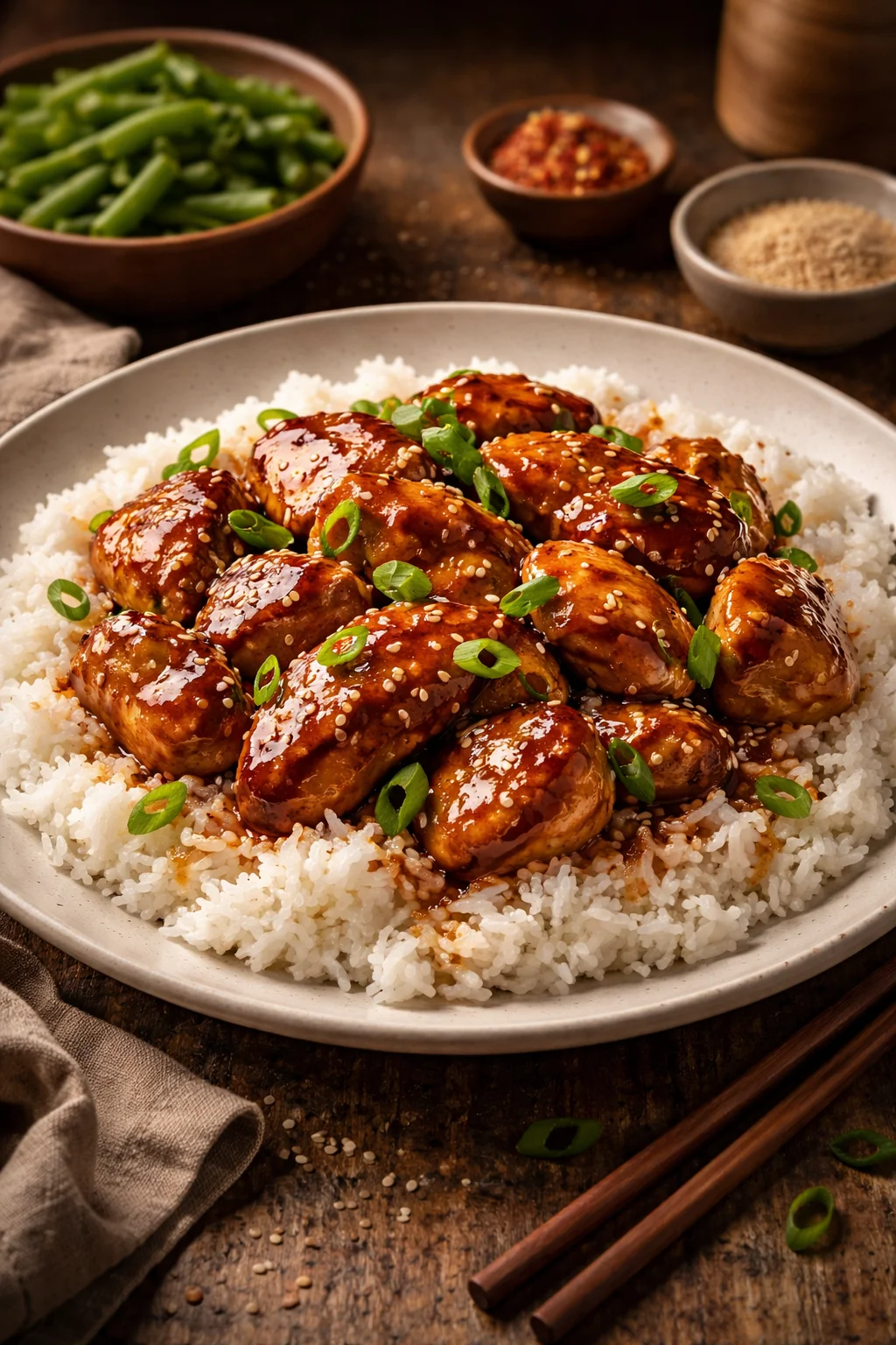 The sauce is usually a mix of soy sauce, brown sugar, garlic, ginger, a splash of broth, and a little vinegar for balance. If you actually use bourbon, great, but you can also skip it and still get a good result. I thicken it with a cornstarch slurry so it gets glossy and clings to every piece.