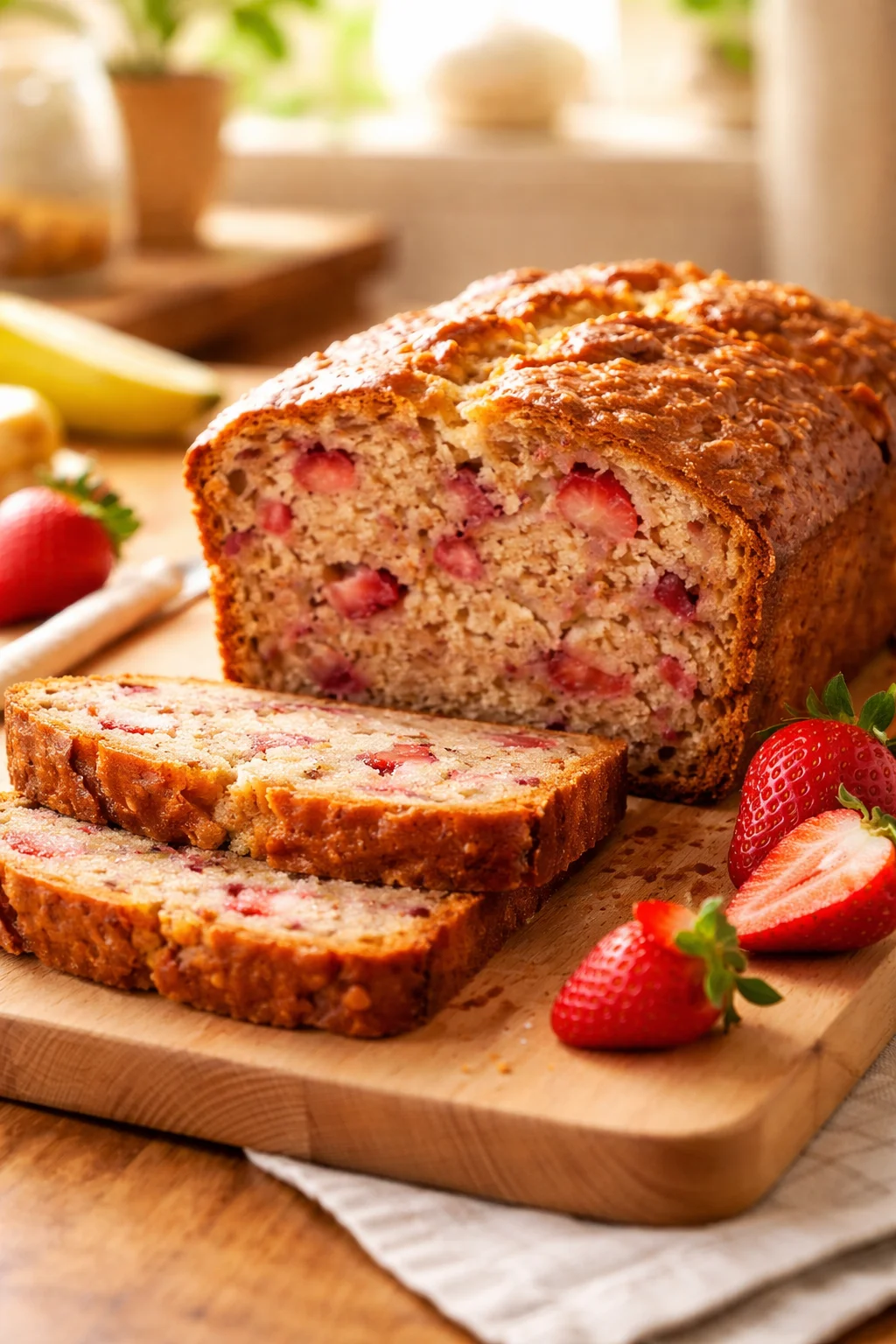 strawberry banana bread is my go to fix for those weeks when I have a couple of spotty bananas, a box of strawberries that is getting a little too soft, and zero patience for a complicated dessert. I started making it on a lazy Sunday, and now it is the thing my family asks for when they want something sweet but still breakfast friendly. If you like cozy baking ideas, I also browse this site when I want new flavors without a bunch of fuss. This loaf comes out **deliciously moist**, smells like a smoothie turned into cake, and it is easy enough to pull off even when your kitchen is a mess. Also, it makes your house smell so good that people suddenly “remember” to stop by.
