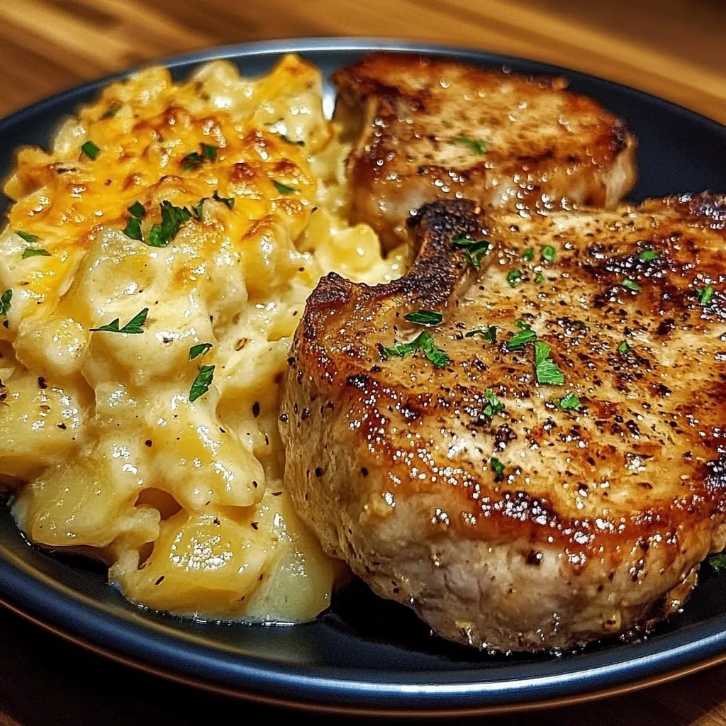 The savory, caramel-like scent of cooked pork and melted cheese permeates the air, transporting the senses to a cozy dinner setting. This hearty dish of Garlic Parmesan Pork Chops with Cheesy Scalloped Potatoes transcends mere sustenance, becoming a symbol of familial love and togetherness, fostering joy and contentment in all who partake.