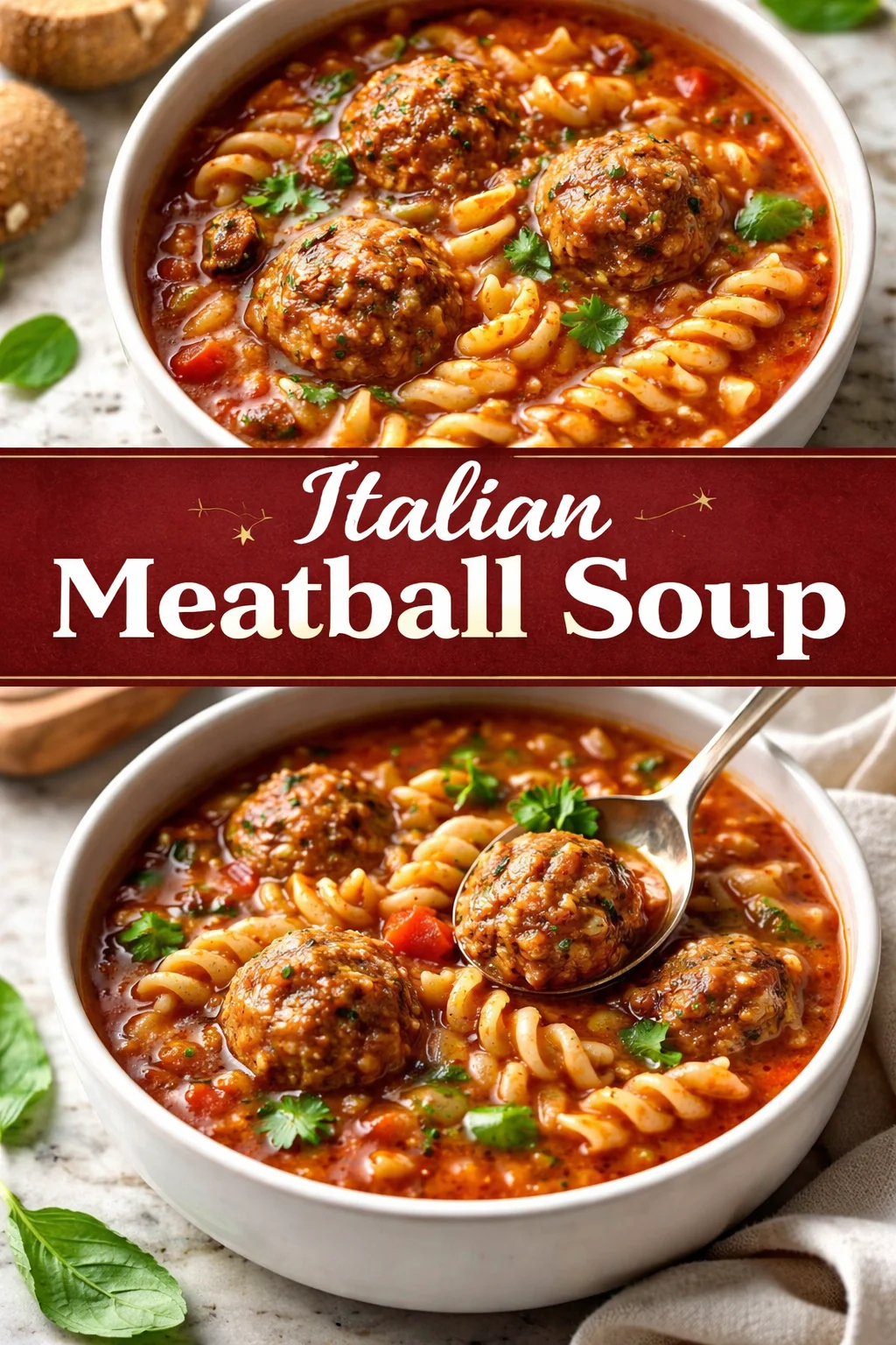 Italian Meatball Soup isn’t just a meal; it’s a cherished tradition and a comforting embrace that warms the heart. It’s a bowl that invites you to slow down, gather your loved ones, and savor the little moments in life. As you try this recipe, I hope it becomes a staple in your home—a dish that’ll not only fill your stomach but also nurture your soul. So grab your ingredients, dive into this delicious adventure, and don’t forget to share your joyful moments in the kitchen! Cozy up, and let this soup remind you of the warmth of home.