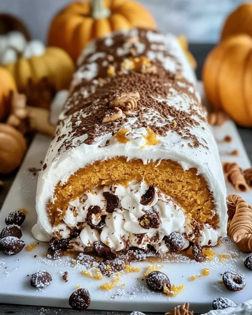 - Gently roll the cake back up without the towel, ensuring the filling stays inside.