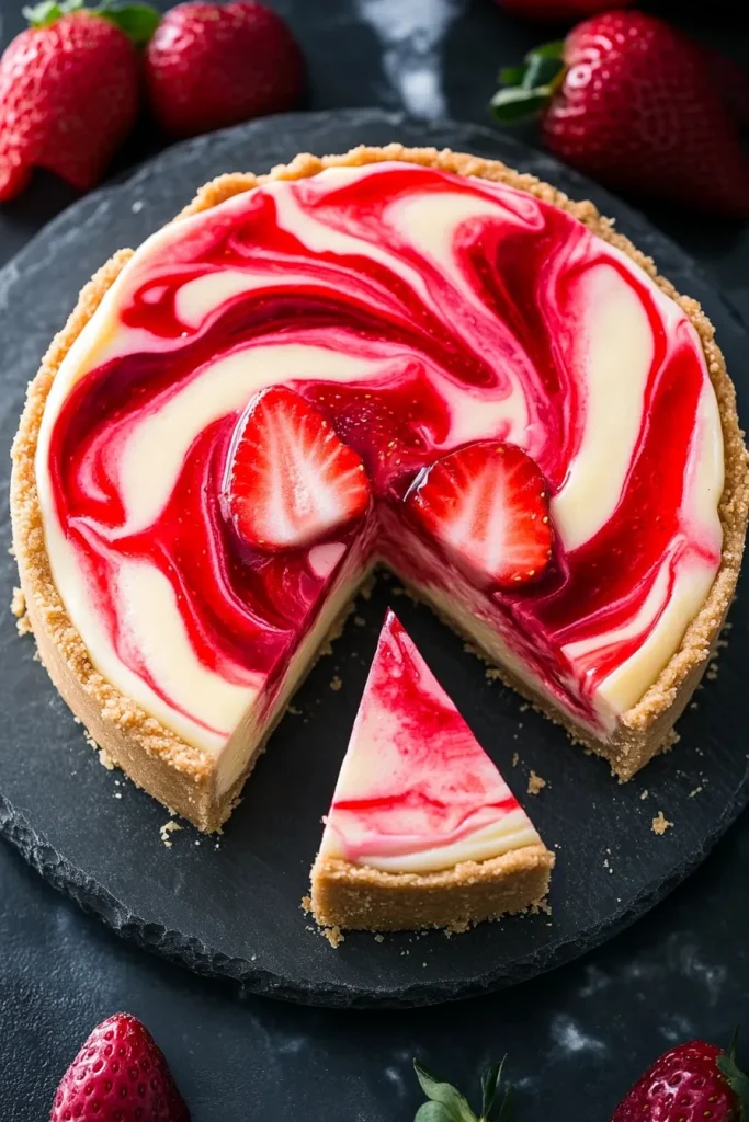 Strawberry Swirl Cheesecake is a deliciously creamy dessert, combining the richness of classic cheesecake with a burst of fresh strawberry flavor. It’s perfect for any special occasion or whenever you crave a fruity, indulgent treat.