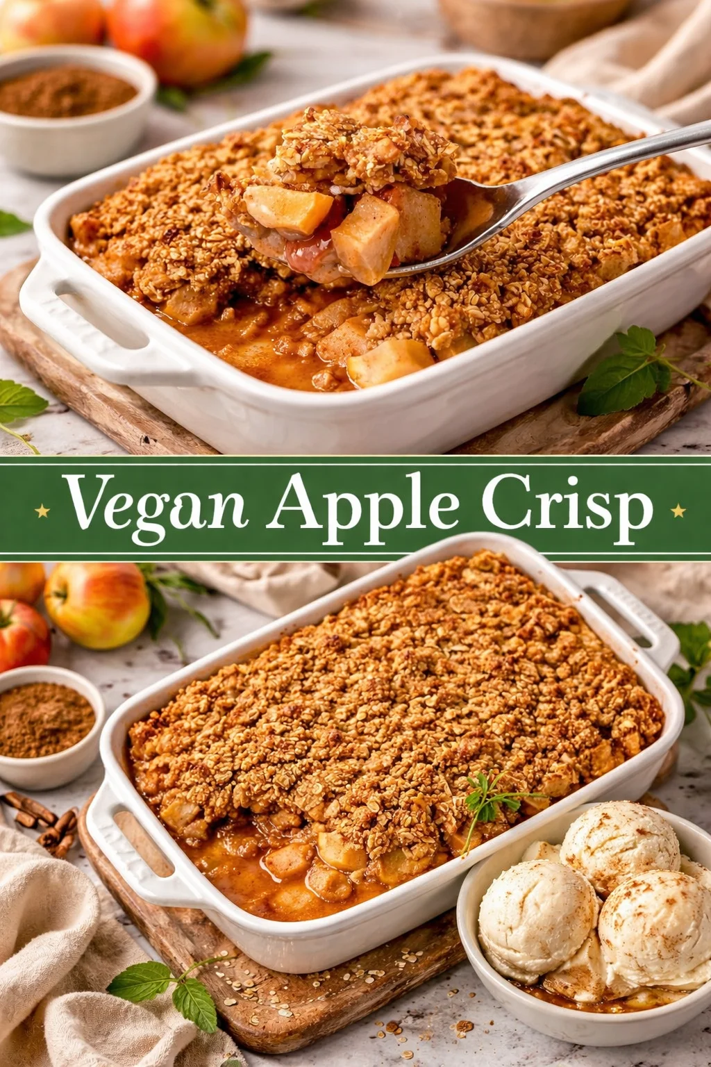 Allow the Vegan Apple Crisp to cool for at least 10 minutes before serving. This step helps the filling to set slightly, making it easier to scoop.